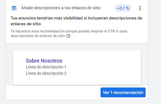 Las recomendaciones se dividen en varias categorías. Aquí te mencionaré las más recurrentes, para qué sirven y te comento si pueden mejorar el rendimiento de las campañas, pero OJO: siempre en función de la métrica de las conversiones.